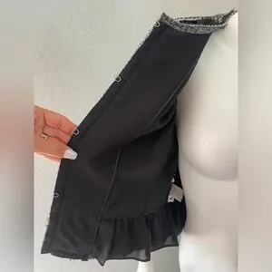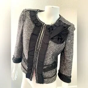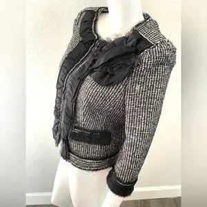 Black and white cropped wool jacket with ruffles detail
