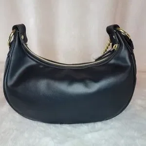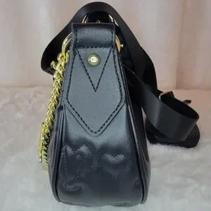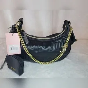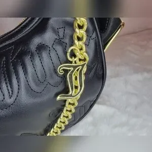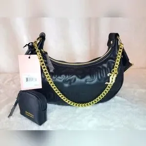 NWT Juicy Couture Quilted Half Moon Black Crossbody, with a small removable change purse and gold chain.