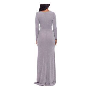 BETSY & ADAM Womens Gray At Hi-lo Hem Long Sleeve Full-Length Formal Dress 4