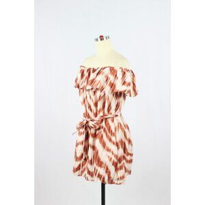 BANANA REPUBLIC Meridian Zebra Print Linen Off Shoulder Ruffle Dress, Size PXS