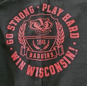Victoria's Secret Pink Flare Fold over band leggings, band says Love Pink, Wisconsin Badger decal on hip, college leggings