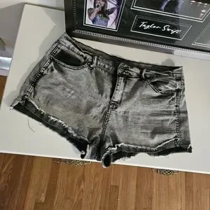 🖤🩶 Black/Grey Jean shorts. Purchasesd from Marshall's. Back pockets are unusable. Front are! Front fold is sewn. Very stretchy. Size 13. They were my favorite shorts, but, no longer fit me.