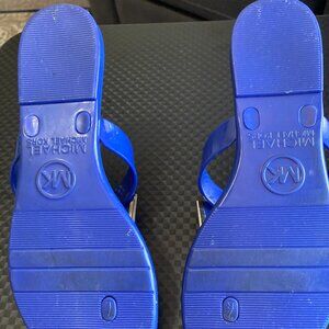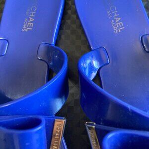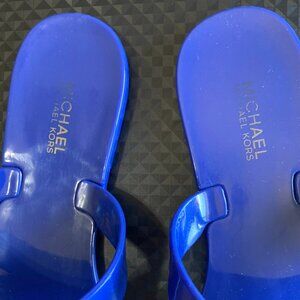 MICHAEL MICHAEL KORS PVC/Jelly Thong. Size 7. Beautiful sapphire blue color. Bow with Gold logo accents. Pre-owned in good condition with box