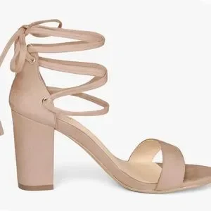 Allegra K Tie Up Strappy Heels Chunky Heel Nude Heels Size 8
