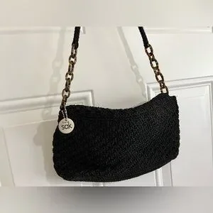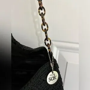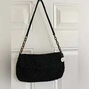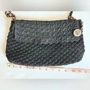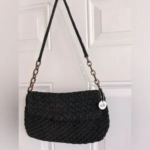 The Sak Black Crochet Flap Snap Closure Faux Tortoise Links Shoulder Mini Bag