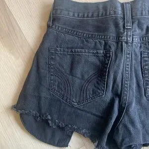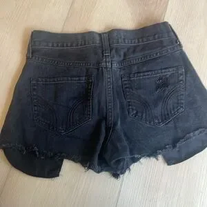 Hollister ripped shorts, short-short high rise size 1 or 25. Open pockets and belt loops, exposed pockets on the bottom, jean material, hardly worn, great quality.