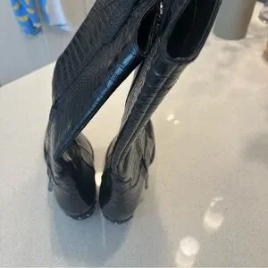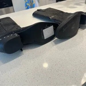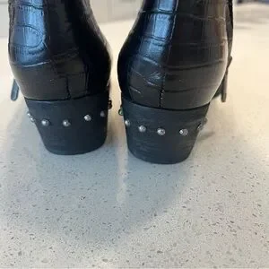 Sam Edelman Black Leather Cowboy Western Boots with Crocodile-Embossed Pattern