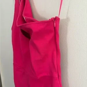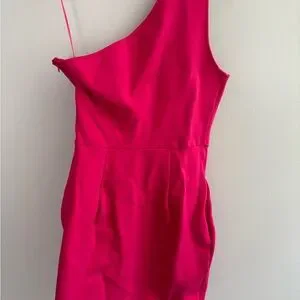 Excellent condition, no flaws. Hidden side zip, fabric has good stretch/hold. One shoulder, one cut out at front.