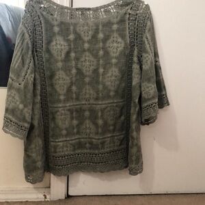 Lovely greenish gray top crochet accents by Democracy.23 inches long from back