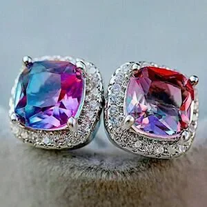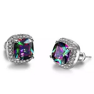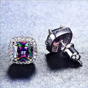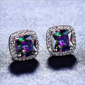 Mystic Fire Topaz Stud Earrings, Square, Princess Cut