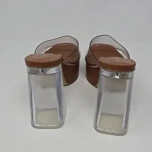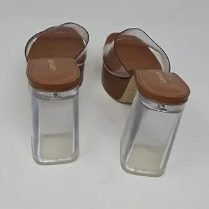 Larroude Dolly Lucite Vinyl Platform Mules brand new without box stickers residue on sole some scuffs from pallet see pictures for reference. You have a question don't hesitate to ask