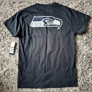 Great Seahawks shirt with front and back graphics! Large Seahawk logo on the back. Great for any fan!