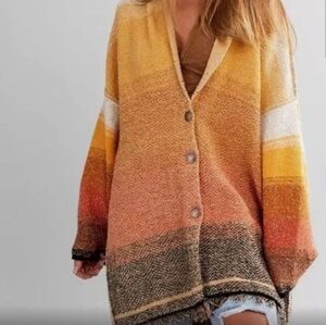 Free People Oversized Sunset Park Cardigan Sweater Low Sun Combo Size Large