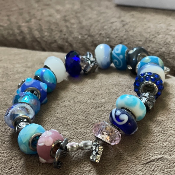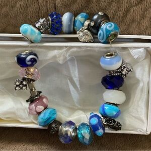 Handmade Bracelet with Charms and Blown Glass Beads