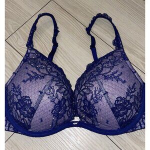 Women’s Victorias Secret Push-Up Bra, blue, lace, rhinestones detail, lightly padded, underwire, back close