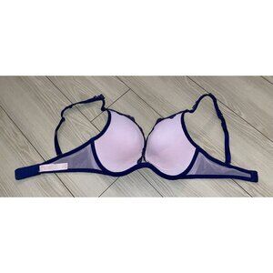 Victorias Secret Push Up Bra Lace Padded Underwire Rhinestones Womens 32D Blue