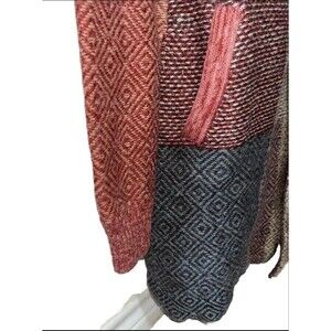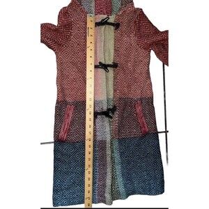 This Anthropologie sweater is a must-have for any fashion-forward woman. The red wool material is perfect for keeping you warm during the colder seasons, while the hooded design and pockets add a touch of practicality. It's a great choice for casual or business occasions, and is sure to make a statement wherever you go. The long sleeves and cardigan style make it a versatile piece that can be dressed up or down. This sweater is a size XS and is part of the regular size type. It's dry clean only and is perfect for winter, fall, and spring. The bohemian and colorful theme make it a unique and fun addition to any wardrobe.