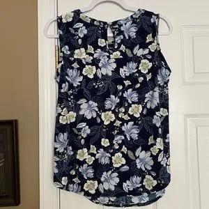 41 Hawthorne. Beautiful sleeveless blouse with the floral pattern. Can be worn under a jacket or cardigan. Can be dressed up or down. Excellent condition.