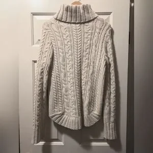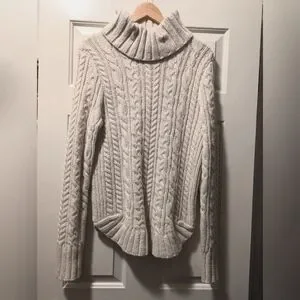Duluth Trading Co. Wool Cashmere Blend Beige Turtleneck Cable Kni Sweater Size S