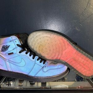 Used Jordan 1 high zoom fearless all black with holographic going for 300 new and 200 used. A harder and harder to find shoe these days these have been worn but for how unique of a shoe they are you can’t beat them. Only selling to try and get ahold of a more expensive sneaker I’ve been wanting for a while.