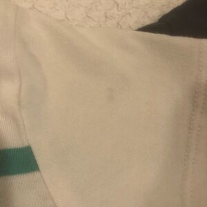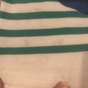 Play condition short sleeve white shirt with green stripes and an anchor on front. Size 4-5 years.