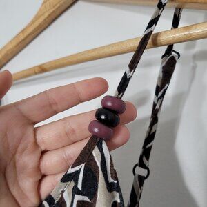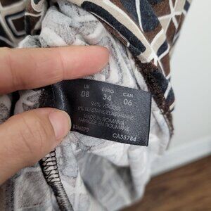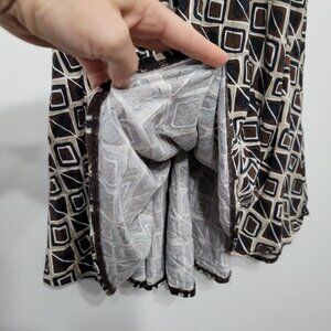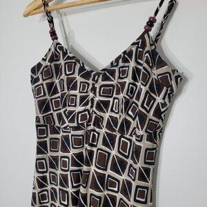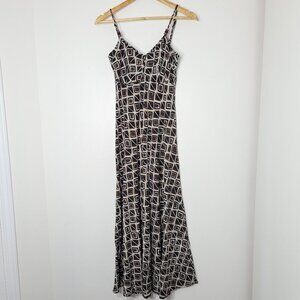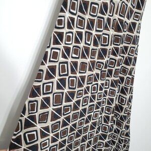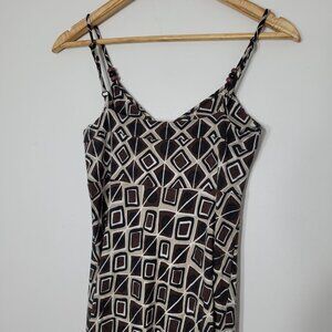 Planet Brown Geometric Print Fit and Flare Midi Dress Spaghetti Straps Stretch V-Neckline
