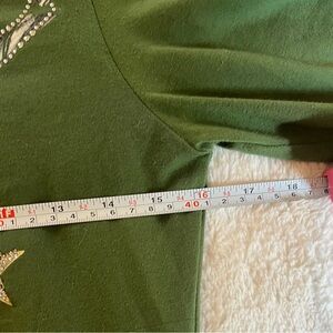 This is a really cool COOGI shirt with 3/4 length sleeves. Im not sure if this is women’s or junior’s size. I feel like it’s a small medium but I could be wrong. It’s definitely a ladies or juniors medium. The shirt is meant to fit snuggly anyway. Still looks new. Very unique piece. Measurements in pics.