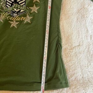 COOGI Embellished Ruched Sides Shirt Olive Green Size M