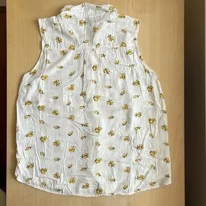 EUC lemon summer print, sleeveless, collared and full button front tank top size 6