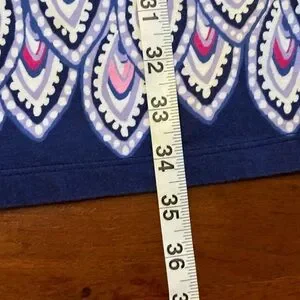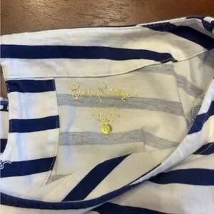 Lilly Pulitzer Dress. Blue and white stripe with intricate design at hem. Keyhole back detail. 100% cotton.