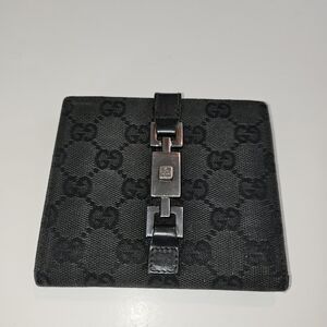 Pre-owned, great used condition, Gucci Jackie canvas wallet with piston lock.