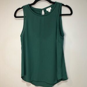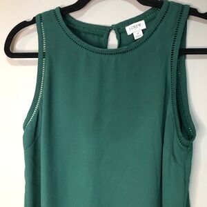 J Crew Women's Dark Green Sleeveless Tank Top with Ladder Trim