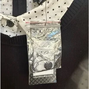 NWT! City Chic Women’s Layered Polka Dot and Black Pullover Sweater