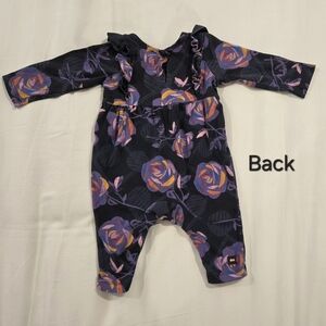 Like new, no flaws. Snaps between legs for easy diaper changes. Comes from a non-smoking, pet-free home