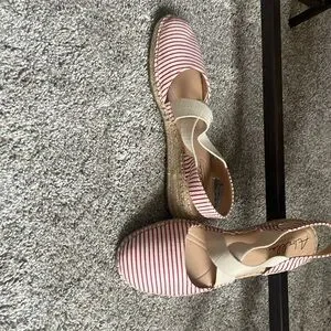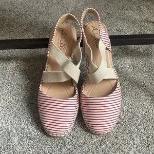 Great for the summer! Abella Red & White 2" wedged closed-toe shoe