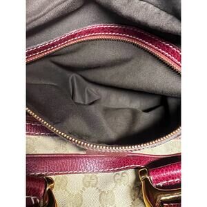 Gucci GG, Monogram Canvas, Vintage, Y2K, Hystaria, Boston Bag, Leather, Canvas, Metal Hardware, Stripe, Burgundy, Top Handle, Satchel.