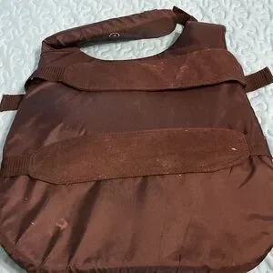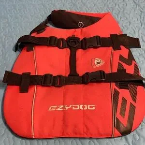 Used only 2 seasons for our German Shepard. Worked really well . Size is large. At the time he weighed about 50 pounds. Has 2 adjustable straps. Red and black