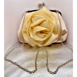 Women Rose Evening Cross-body Handbag Metal Top-handle Chain Strap 6" x9"