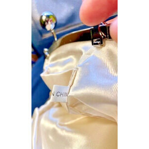 This stunning women's evening clutch handbag is a must-have accessory for any formal occasion. With a beautiful ivory color and original design, this bag is sure to turn heads. The top-handle bag chain strap cross-body bag style is perfect for keeping your hands free while still being able to hold all your essentials. Crafted in China and made with high-quality materials, this vintage accessory is an original piece that will add a touch of elegance to any outfit. Whether you're dressing up for a wedding or a night out on the town, this bag is the perfect choice. So don't wait, add this gorgeous evening bag to your collection today!