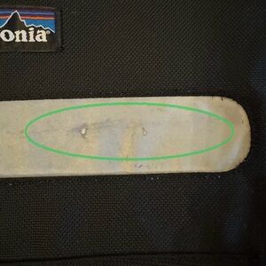 Preowned condition. Company logo embroidery on front. No holes or tears, clean interior. Reflective strip on front has some scratches, shown close up and circled in last two photos.