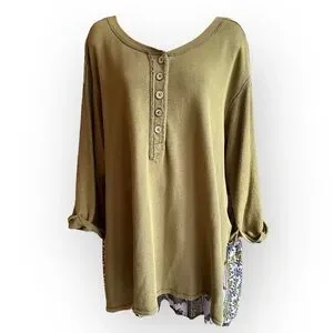 Free People Women's COOL BABY Pull Over Floral Back Top Shirt Henley Mos…