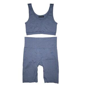 Hunter & Brown blue Seamless Ribbed Workout Set bra shorts size Small medium