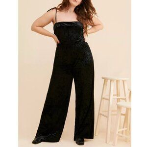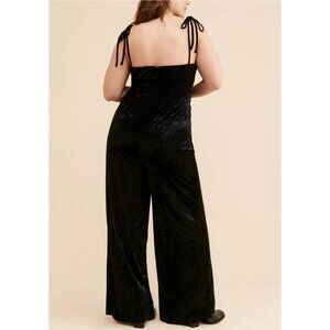 EUC Anthropologie Bellevue Tie Strap Black Crushed Velvet Wide Leg Jumpsuit