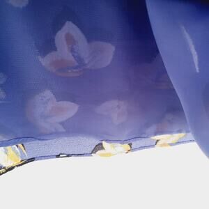 C & E purple floral dress sleevess roomy fit, lined. Polyester. Easy care wrinkle free. Excellent used condition. Tassels.