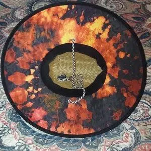 Size 18" X 17" X 7" H. Each hat is Tye Dyed uniquely, so no hat is the same. Bream in front is 5.5" from head, giving great coverage from the sun. Adjustable neck strap.