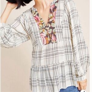 Anthropologie Darlene Plaid Peasant Blouse