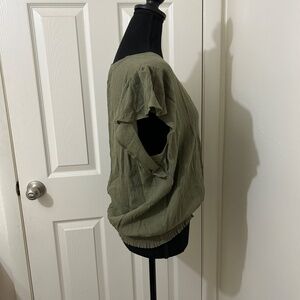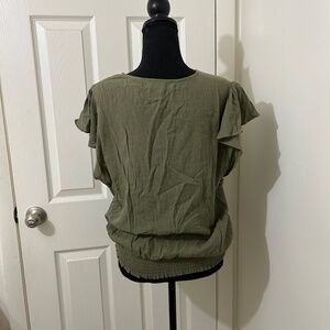Michael Kors Olive Green Flutter Sleeve Blouse With Gold Zipper Size Large. Excellent condition! I am happy to provide specific measurements upon request.