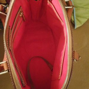 @barkfarm I only used it once,I am downsizing my purse collection. It is like a reddish brown