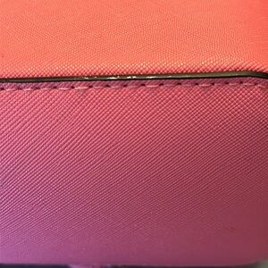 Pretty in Pink! Cute crossbody bag with silver chain detail. Measures approximately 9" x 7-1/4" x 3-1/2". There is one area on black trim that looks like it was scuffed from storage, but could probably be fixed with a Sharpie :)