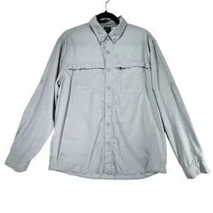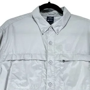 White Sierra Outdoor Shirt Beige Medium Fishing Hiking Vented Rolled Sleeves